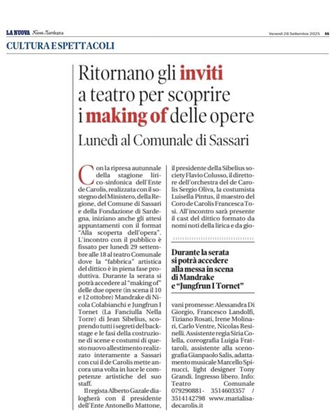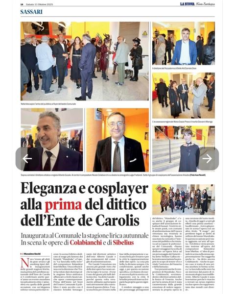 Con la ripresa autunnale della stagione lirico-sinfonica dell'Ente de Carolis, realizzata con il sostegno del Ministero, della Regione, del Comune di Sassari e della Fondazione di Sardegna,...
